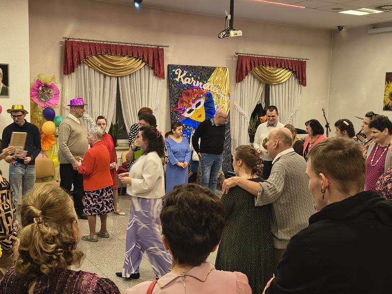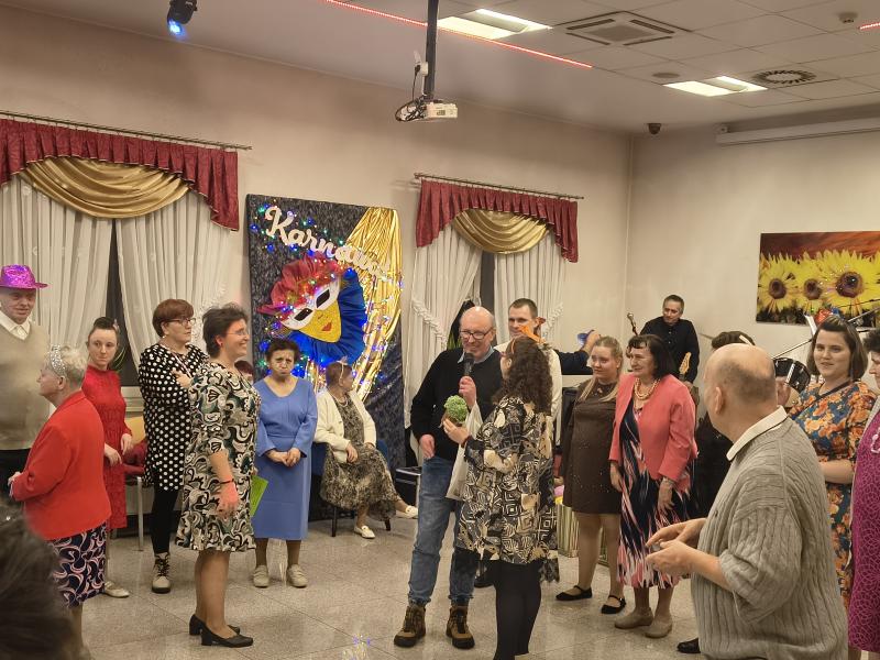 10 lutego 20 Mieszkańców naszego Domu pojechało na zabawę karnawałową do swoich koleżanek z DPS na ulicy Wesołej. Dla naszych Panów to wyjątkowe miejsce, które uwielbiają odwiedzać ze względu na zawarte tam przyjaźnie i zawsze miłą atmosferę. Panowie brali udział w zabawach tanecznych i konkursach wiedzy ogólnej, a nagrody dały im wiele radości. Podczas zabawy wyłonieni byli król i królowa balu, a królem został nasz Mieszkaniec z czego był bardzo dumny. Dziękujemy za zaproszenie i dobrą zabawę.